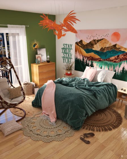 Decorare la camera da letto con un arazzo da parete (tela disponibile su Amazon)